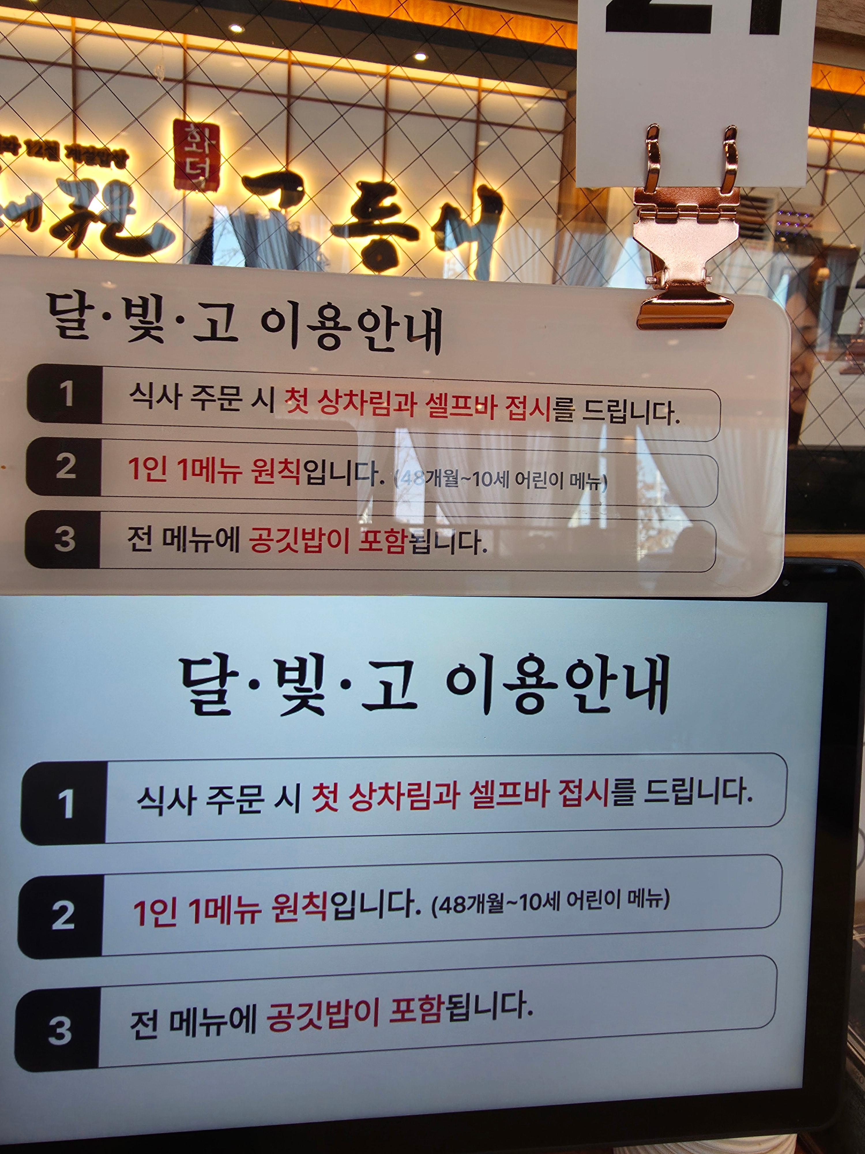 - 1인 1메뉴 원칙 (48개월~10세 어린이 메뉴 있음)