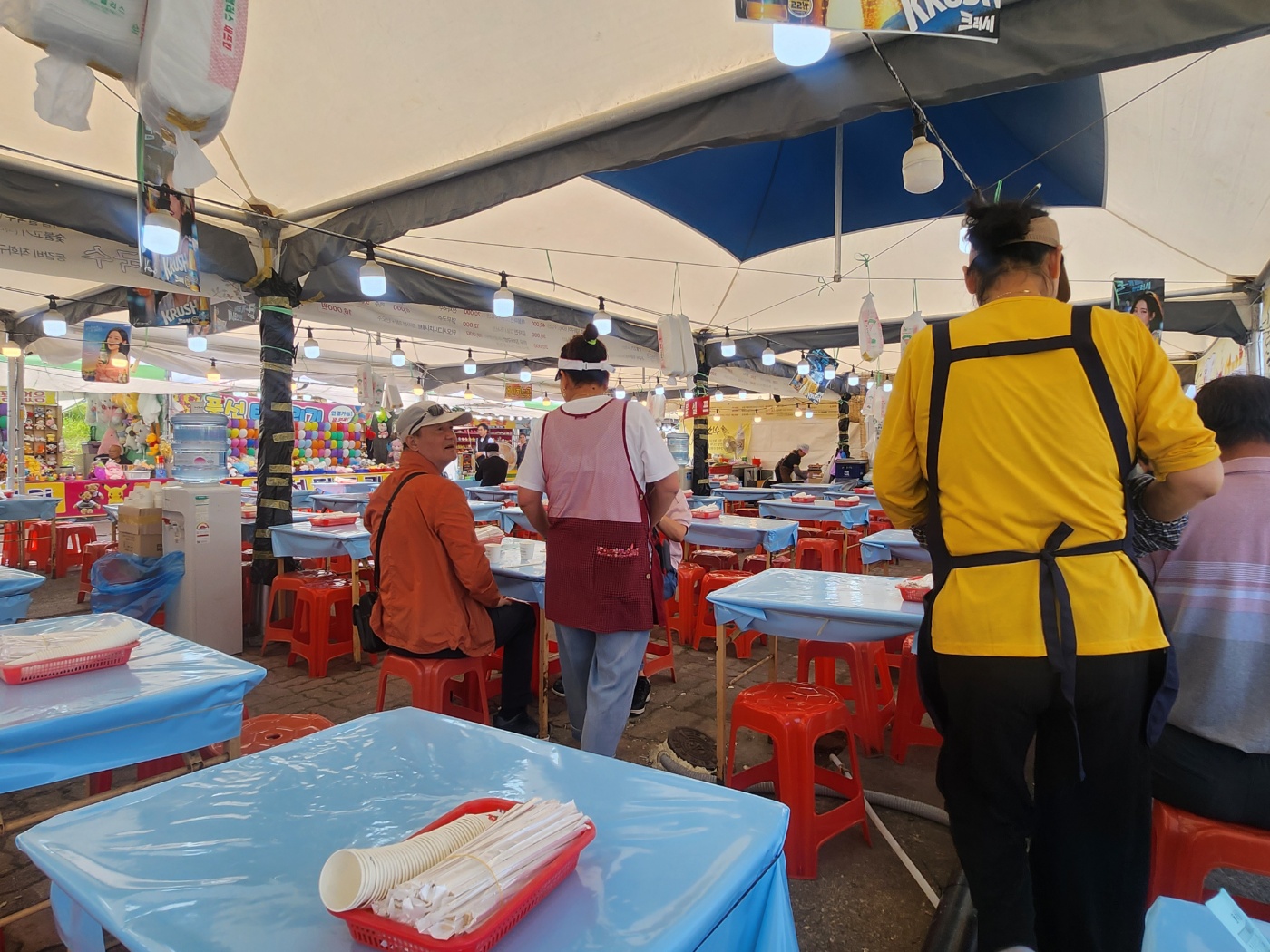 작은 식탁이 다닥다닥 놓인 먹거리 부스에서 잔치국수를 시켜 자리에 앉았습니다.