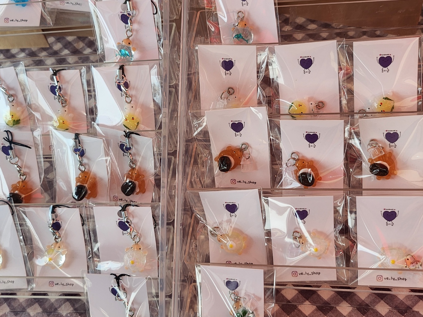 다른 쪽에선 손수 만든 레진 키링을 줄줄이 걸어놓고 “한 번 보고 가세요~” 하는 목소리가 들립니다.