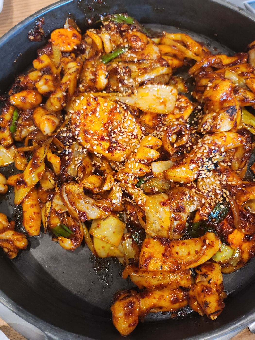 드디어 메인 메뉴인 갑오징어볶음이 등장했어요!