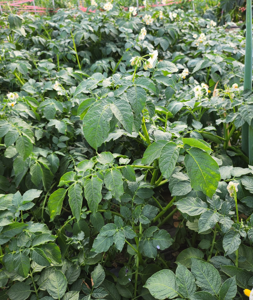 텃밭에 도착하자마자 가장 먼저 눈에 들어온 건 파의 꽃대였어요. 파꽃이 이렇게 탐스럽게 피어날 수 있다는 걸 아시는 분은 드물 거예요. 하얗게 뭉쳐 핀 꽃송이가 마치 조그마한 지구처럼 보였어요. 그 옆에는 잘 자라고 있는 감자잎이 무성하게 펼쳐져 있고, 제 손보다 더 커진 잎 사이로 감자가 튼실하게 자라고 있을 걸 생각하니 절로 미소가 지어졌어요.