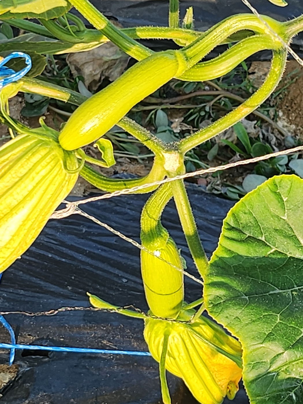 중간쯤 다가가 보니, 가지런히 줄지어 심어둔 호박과 오이들이 덩굴을 타고 자라며 하나둘씩 열매를 맺고 있었어요. 특히 노란 호박꽃이 피고 있는 모습을 보면 생명의 신비를 다시금 느끼게 됩니다. 어떤 줄기에는 큼지막한 애호박이 주렁주렁 매달려 있고, 반짝이는 녹색빛의 오이도 땅과 하늘 사이 어딘가에 매달려 자라고 있었죠. 매일 보지는 못하지만, 이토록 변화를 줄 수 있다는 것이 얼마나 감동적인지 몰라요.
