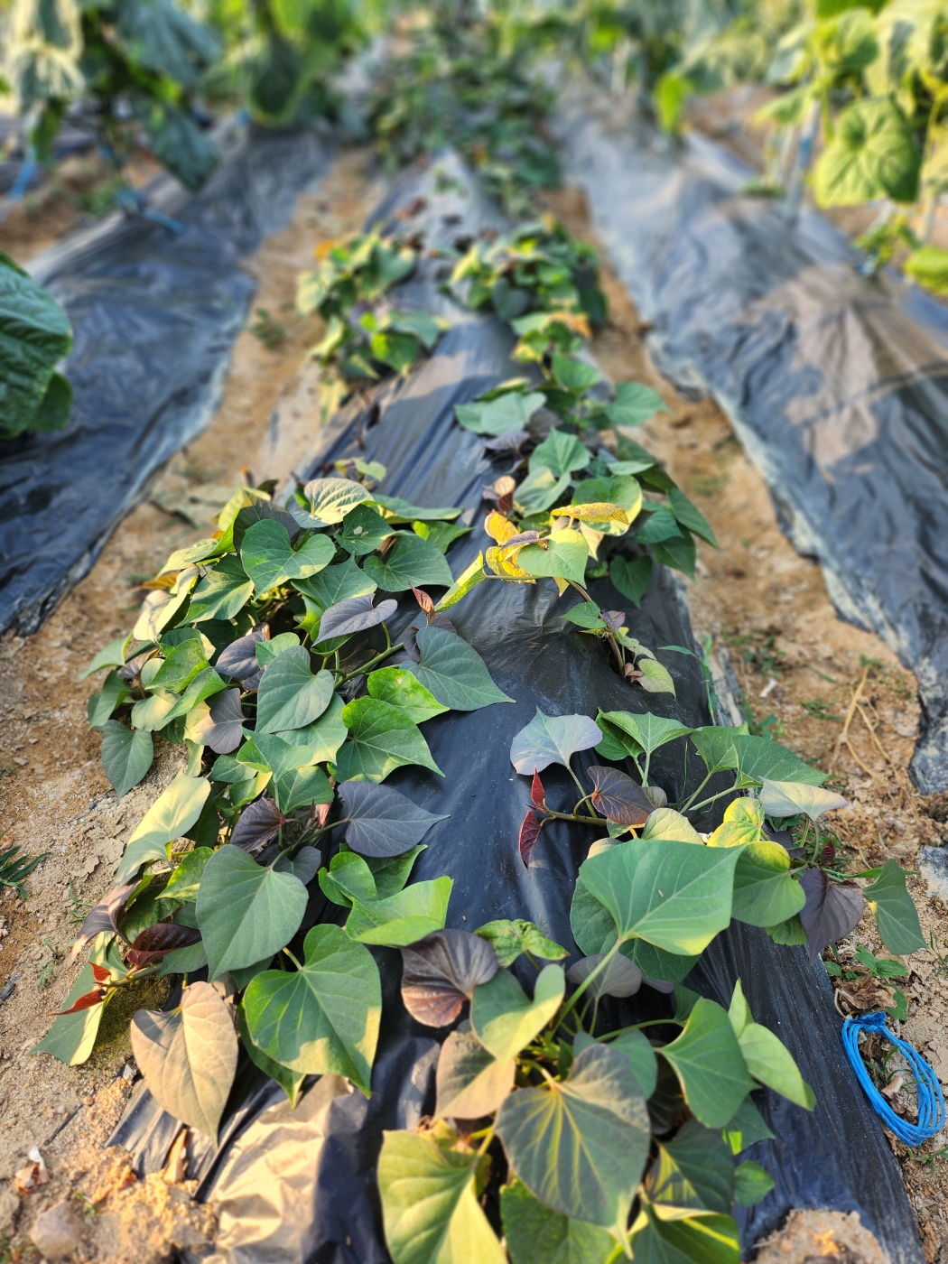 이제 눈을 돌려보면, 가지가 알록달록 피어 있는 밭이 보입니다. 연보랏빛 가지는 햇볕을 받아 더욱 선명하게 빛나고 있었고, 고구마랑 그 옆에는 토마토가 노랗게 익어가는 모습도 볼 수 있었어요. 방울토마토가 자라나는 것을 보고 있으면 왠지 마음이 말랑해지는 기분이 들어요. 어쩌면 제 감정도 이들과 함께 무르익어가는 건 아닐까요?