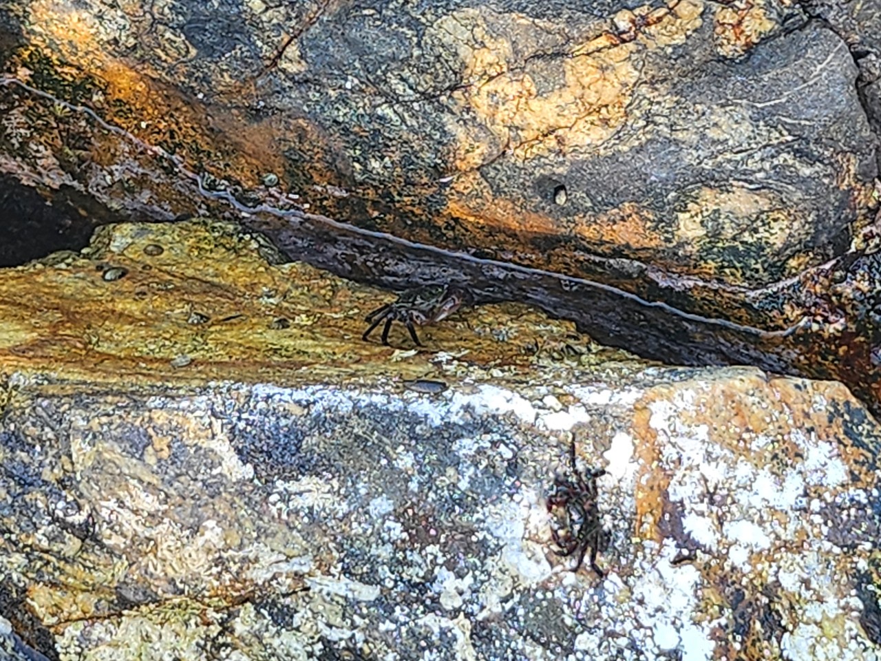 바위 사이를 기어다니는 작은 게들 때문이다.