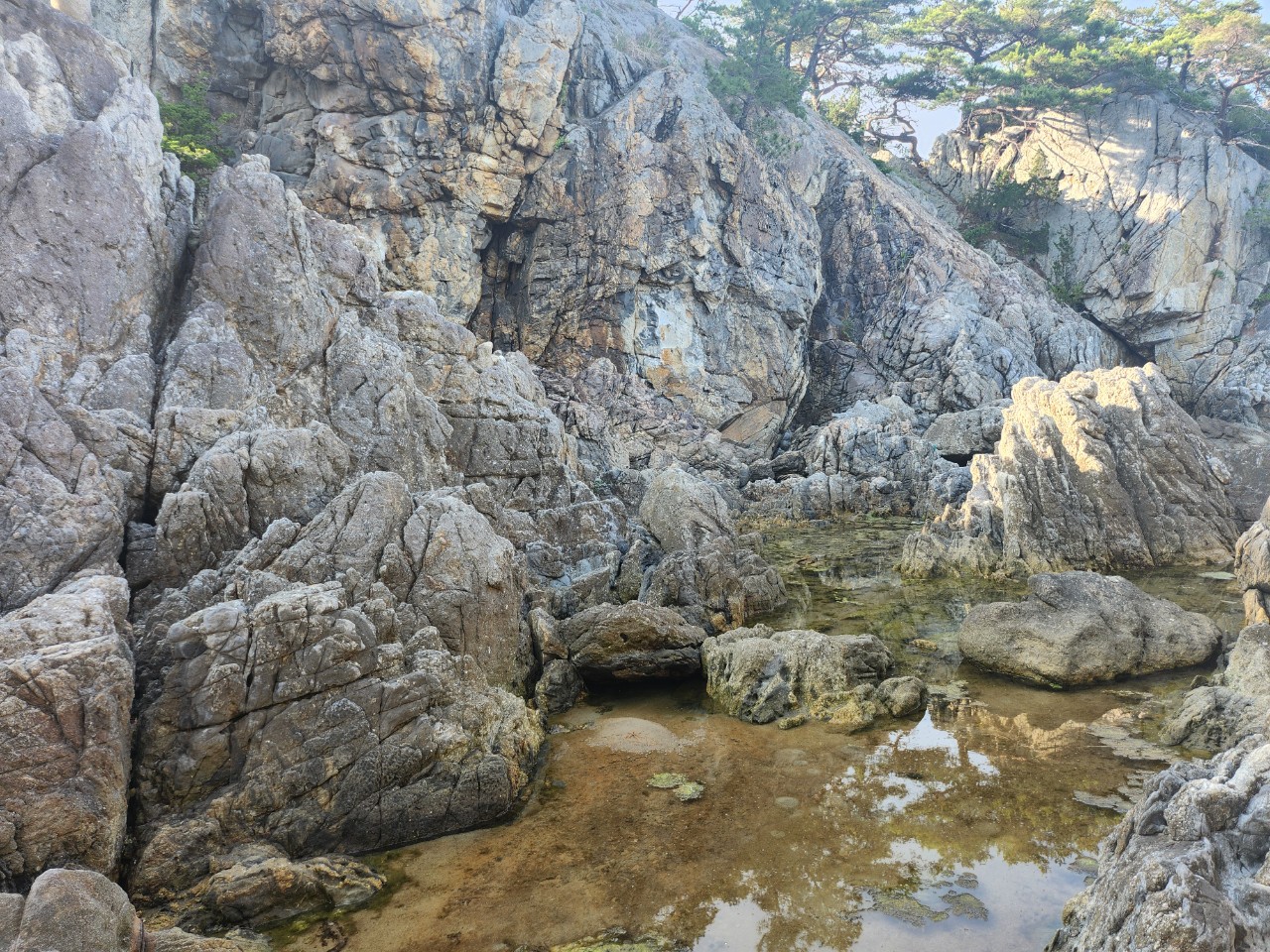 바위 틈에 고여 있는 투명한 바닷물 속을 들여다보면