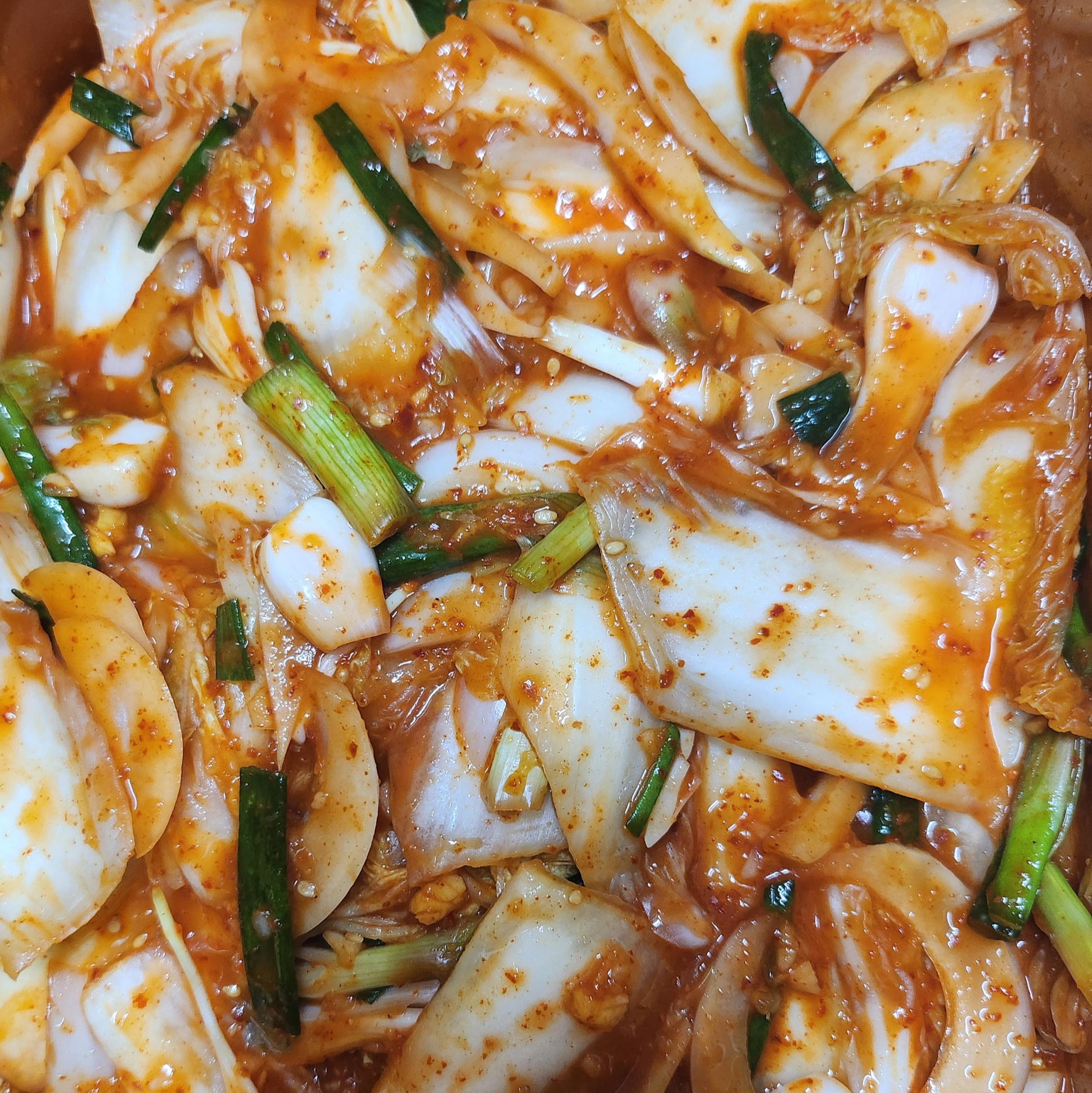 양념이 골고루 배고, 쪽파와 배추가 어우러지는 그 찰나의 모습이 참 아름답다.