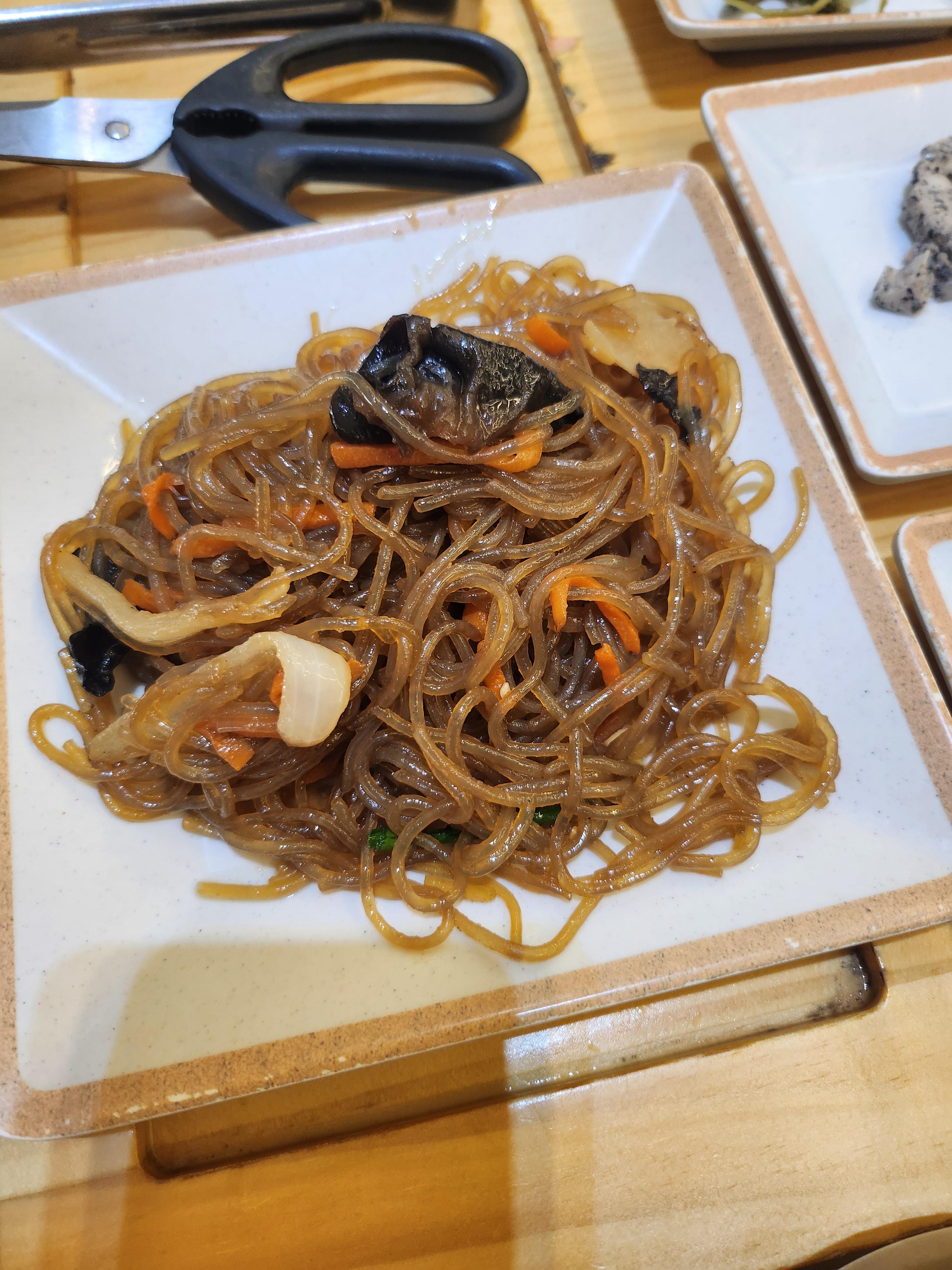 밑반찬들도 하나같이 정갈했어요. 김치, 장아찌, 나물까지 다양하게 나왔고, 무엇보다 마음에 들었던 건 부족하면 얼마든지 더 가져다 먹을 수 있다는 점이었어요. 잡채도, 반찬도, 심지어 밥까지도 추가요금 없이 넉넉히 먹을 수 있다니, 이만큼 든든한 곳이 또 있을까 싶었습니다.