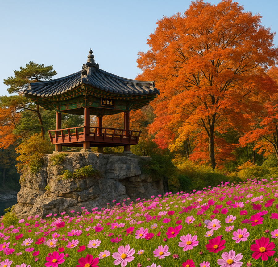 🌸 고석정 & 고석정 꽃밭 – 정자와 꽃이 어우러진 단풍 명소