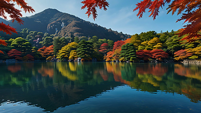바람이 멈춘 순간, 호수 위로 단풍이 반사된다.