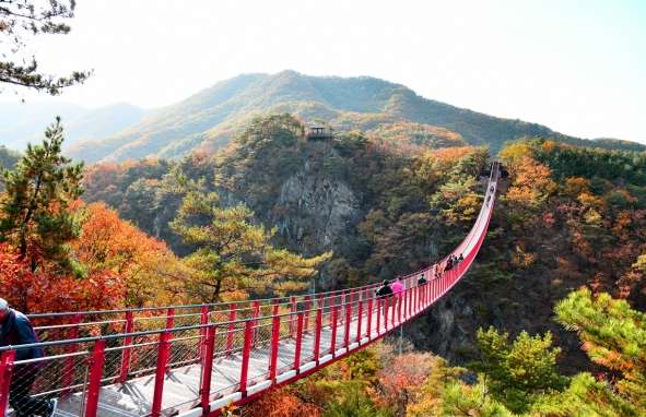 절벽 아래로 단풍이 바다처럼 펼쳐진다.