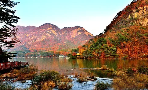 강 따라 흐르는 단풍빛이 유난히 깊다.