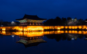 밤에는 동궁과 월지의 불빛이 물결처럼 번집니다.